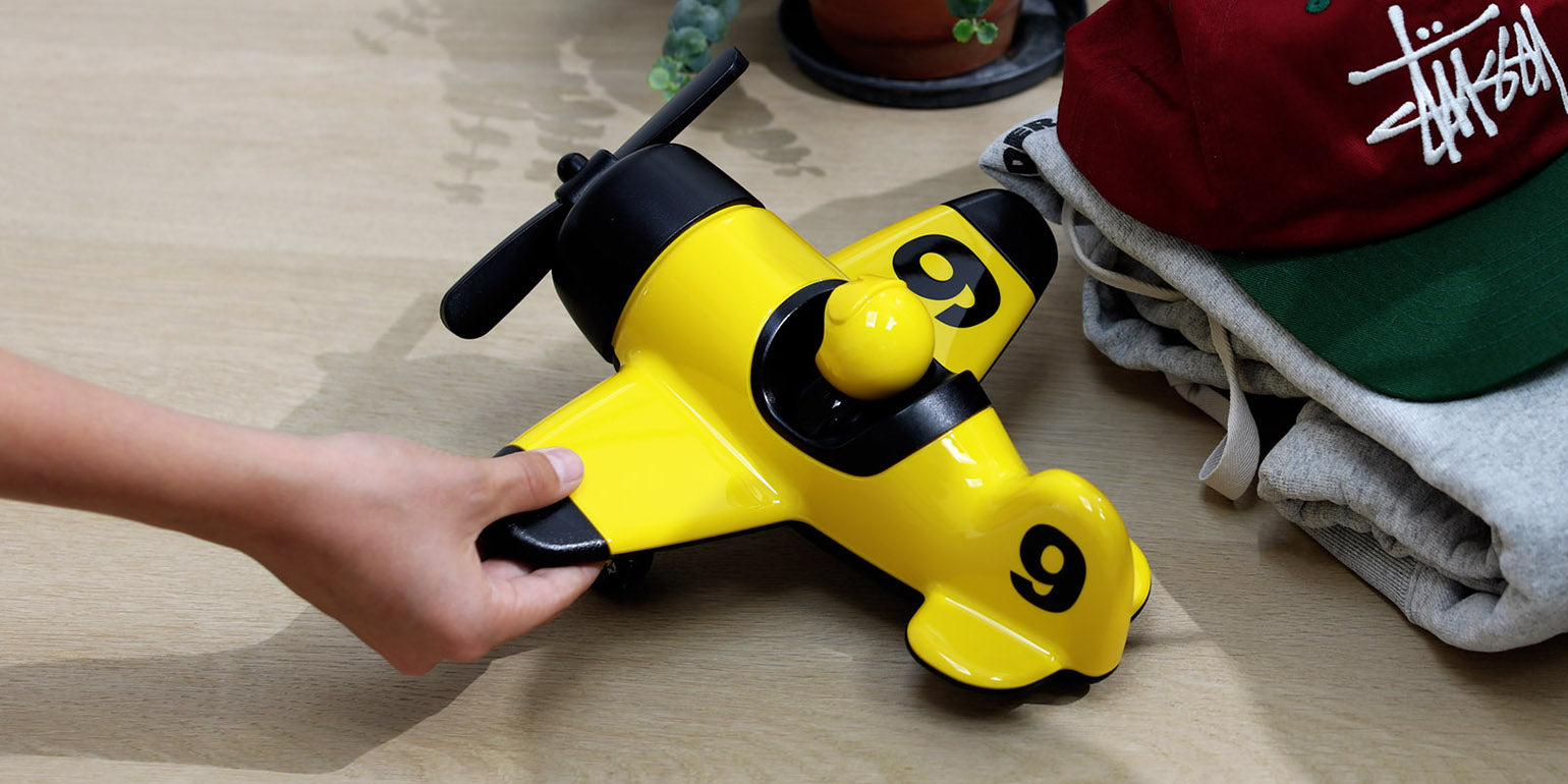 More of push along the floor than hold in the hand. Has a real presence as a display object as well as a toy.